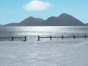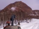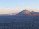ビジターセンター(温泉街)周辺が恵庭岳を背景にベストスポット、丸駒温泉に通じる道も撮影可です。