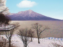 温泉街のホテルの高層階湖畔側の部屋からなら快晴の日、羊蹄山が湖越に遠望できます