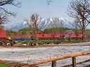 小岩井農場は有料の園地は牛が放牧されていれば入る価値がありますが、むしろ道を挟んだ反対側の牧舎の方が被写体として 優れています(無料)。一本桜は農場内ですが、全く離れた場所にあるので、そこだけ別に車でゆく必要があります。 柵越に100mほど離れた一本桜を見ることになりますが、とにかく早朝からすごい人です。近くに専用の駐車場もあります。