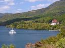 箱根神社: ここも人出が多く、駐車場がありますがすぐに満車になります。階段を上ると本殿ですが、下ると湖畔に出られ そこから見る芦ノ湖は落ち着いた雰囲気です。