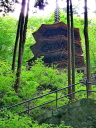 安楽寺: 駐車場から歩いて5分ほどで入口があり、拝観料を納めると木立の中に佇む国宝の姿を下から見上げることができます。