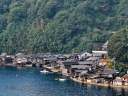 天橋立から車で30分程度です。上からの展望は、道の駅からです。 町中は、観光地然とした店、駐車場はありませんが、小さな港に車は停められ、そこからぐるりと向かいの舟屋街を撮影できます