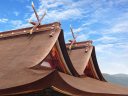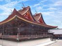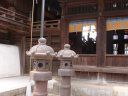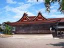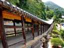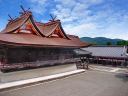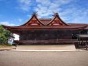 吉備津神社: 本殿は国宝で、向かって左側に広いスペースと階段があるので、そちらから撮影してください。その後ろに回廊があり、ここも撮影向きです