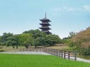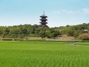 備中国分寺 吉備路のシンボルです。回りが田んぼになっています。平山郁夫画伯写生の地、の碑があり、確かにいいアングルです。