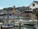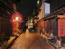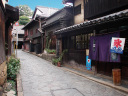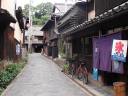 常夜灯のある港すぐ近くに、細い路地の古い町並みの一角があります。