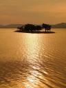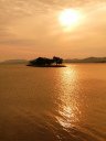 嫁が島: 対岸に夕陽鑑賞用の広い階段状のデッキが完成し、撮影しやすいです。季節によって夕日の位置が極端に変わるので、事前に確認してください。