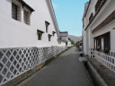 入ってすぐ、南に向けた右側、即ち西の家並みですので、早朝7時前に行けば人の写り込みを避けられます