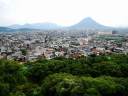 山城なので20分程度登りがあります。天守閣広場以外では、駐車場付近から見上げて撮れば、特長の大石垣に載る天守閣です。 但し完全北向ですので逆光に注意してください