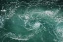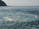ひとつのうず潮は、海面に緩やかな円が発生し、やがて大きな渦になり、ひとしきり回った後、散る。その間10秒位です。連写モード必須です。