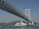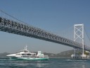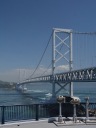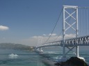 観潮船は普通船と高速船がありますが、広い普通船に乗船しました。追加料金で二階のデッキに上がれば左右に動き回れます。うず潮と大鳴門橋、の定番ショットは午前中早い時間は逆光気味になります。