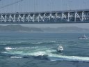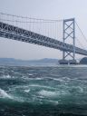 恥ずかしながら、うず潮は一日中グルグル回っているものと誤解していました。一日に二回、一時間くらいずつうず潮が発生しますが、日によって小潮、中潮、大潮に別れますので、観潮表で必ず確認してください。その時間以外うず潮は全く発生しません。撮影は大潮でないと迫力は出ません。