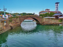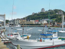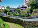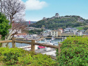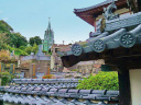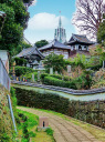 町のシンボルの平戸城はどこからでもみられますが、平戸港を挟んだ北側ホテル旗松亭横の上り坂の中ほどから、更にそこから松浦資料博物館に向かう丘の中腹をゆく道からの構図がこの町の特徴をよく表現できます。有名な協会と寺院の構図は、光明寺、瑞雲寺の南側の細い道ですがわかりにくいので地元の人に聞いた方が早いです。ぐるっと回って2時間くらいです。
