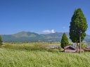 米塚: 草千里からパノラマラインを北に向かい、赤水方向に道が分岐するあたりから斜め下にきれいに見えます。車の通りは少ないですが駐車場はありません。