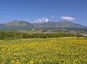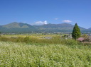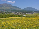 南麓一体: 南阿蘇鉄道の南側は外輪山に向かって畑が高い位置に続いているので、東西に走る細い農道からスケール感のある阿蘇内輪山を撮影できます。阿蘇白川駅から高森駅の南あたりを中心にロケハンしてください