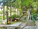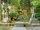 両子寺: 駐車場からすぐの参道入り口の仁王像が有名です。参道は長く一直線なので、一人でも人がいると厄介です。