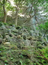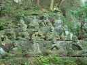 文殊仙寺: 石段を少し上がって本堂脇に羅漢像が鎮座しています。林の中なので昼なお暗く、一脚か感度を上げる必要があります。