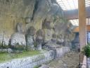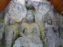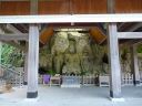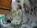 駐車場を降りてすぐの岩場に囲まれた一周10分程度の狭い場所の数ヵ所に仏が刻まれています。オープンエアですが屋根が付き、目の前まで近寄れますが、少し待てば空きますので、心配無用です。